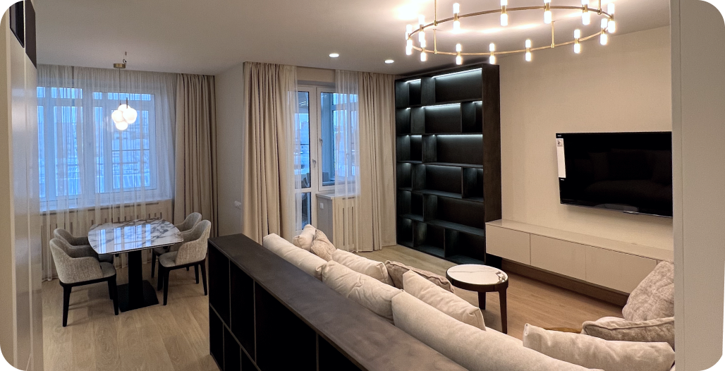 разрабатывает дизайн-проекты с нуля, занимается ремонтом и отделкой жилых и коммерческих помещений в Москве